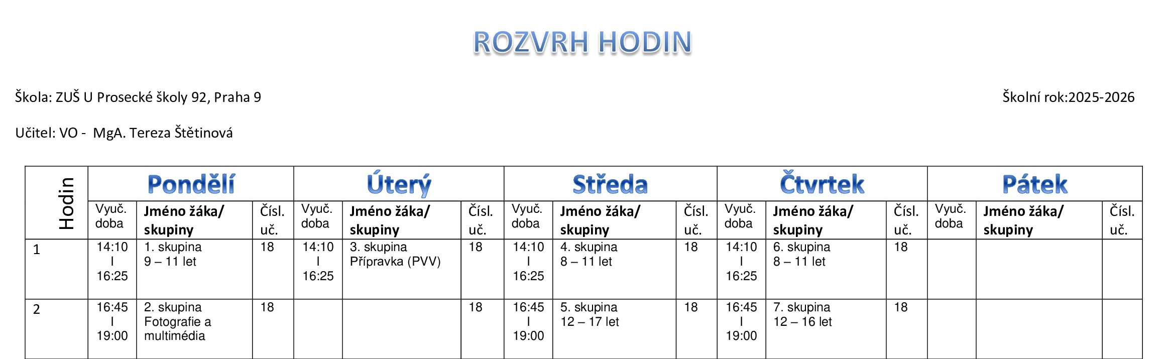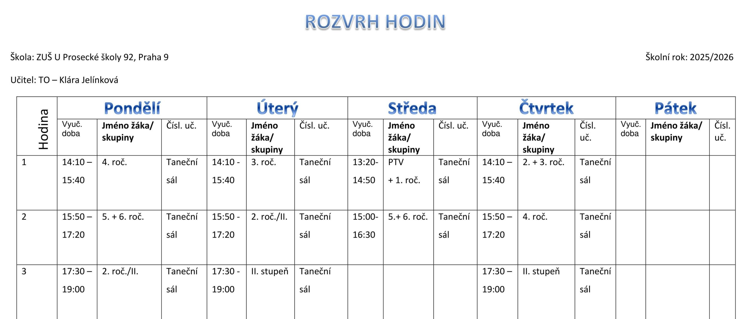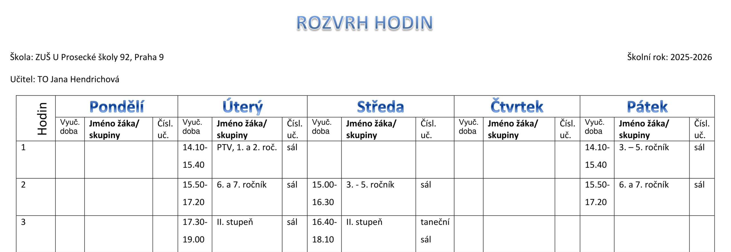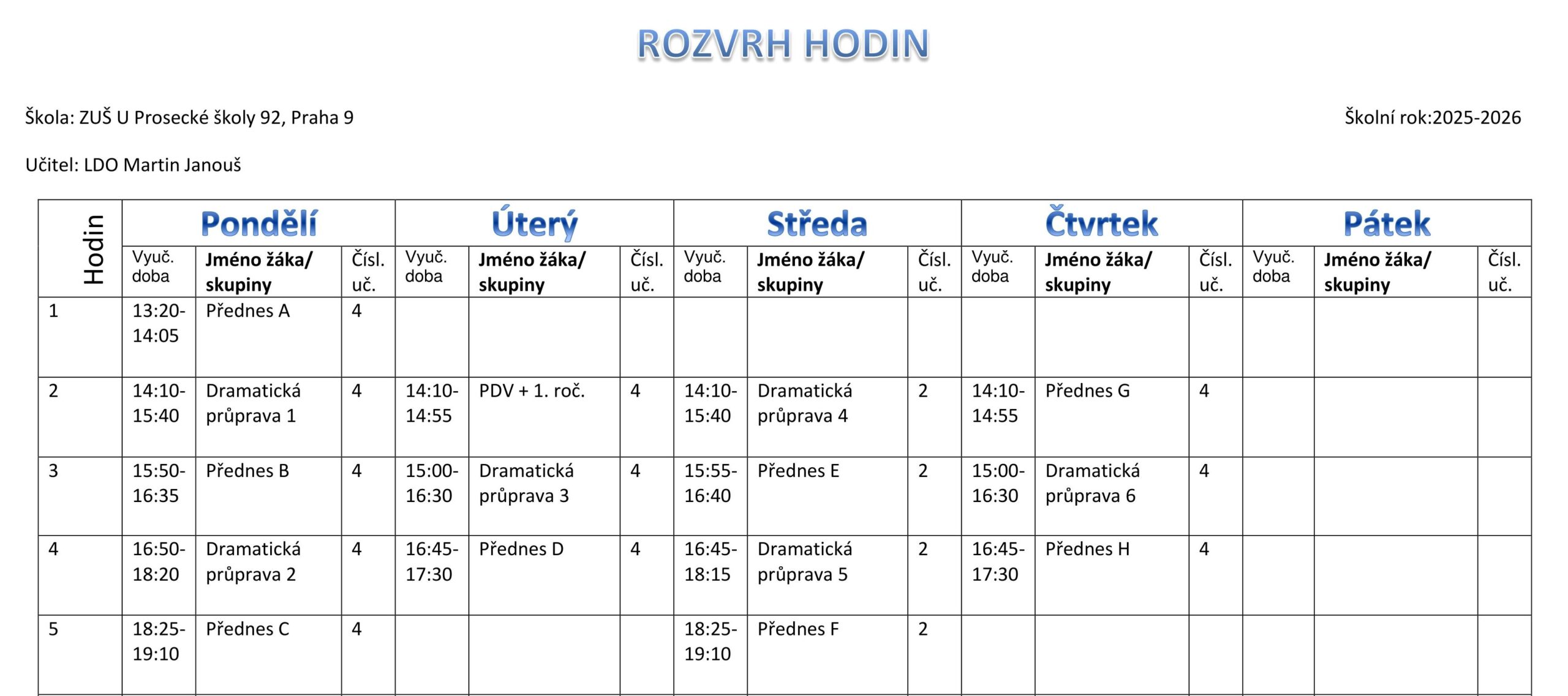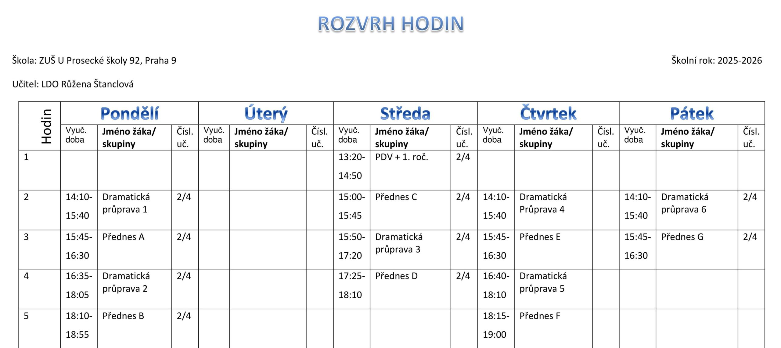 Upozornění: rozvrhy hodin na školní rok 2025/2026 jsou předběžné a mohou se ještě změnit!